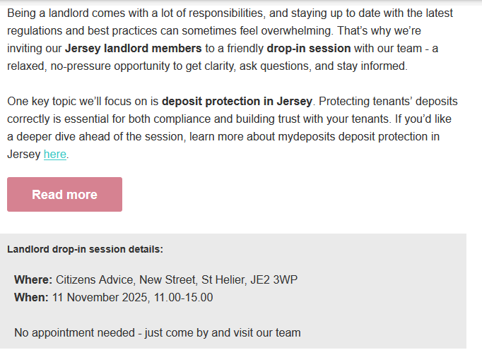 The Jersey Landlord Association's goal is to promote an environment in which relationships between Jersey's landlords and their tenants can thrive. By working with local Government to achieve a positive & fair industry, the Jersey Landlords Association aid & assist our members in driving up standards, achieve a high level of legal & regulatory compliance & promote industry best practice.